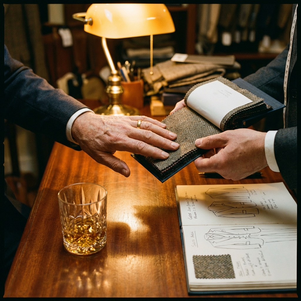 It begins with a conversation. We discuss your lifestyle, preference, and the occasions the suit will serve. A true bespoke garment is tailored not just to your body, but to your life.